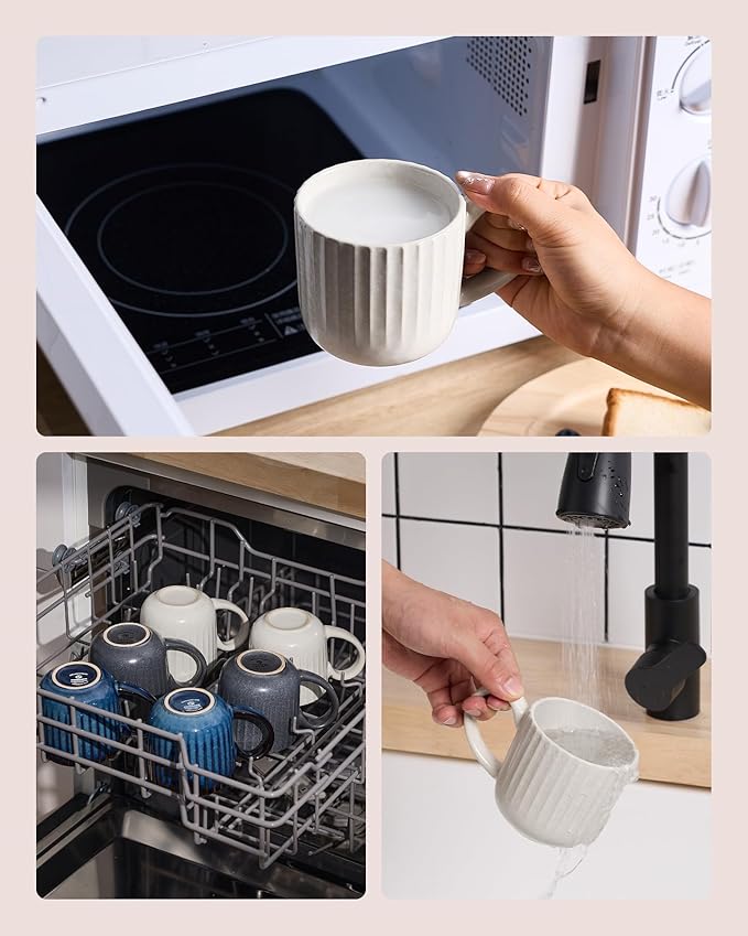 - Dishwasher and Microwave Safe: Coffee cups ceramic are made of quality stoneware and have been tested for safety in both environments by internationally accredited laboratories. The smooth glaze avoids coffee stains and is easy to clean