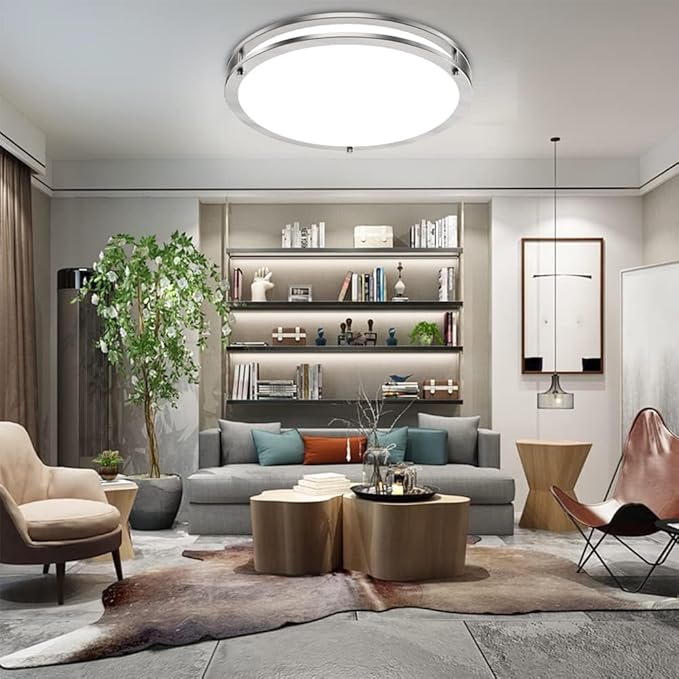- 【Durable, Safe, & Eye-Friendly】Constructed with fire-resistant plastic, this close to ceiling light fixtures light powered by 120 volts is built to last. Its dustproof and moisture-resistant design simplifies cleaning. Premium LED chips deliver stable, flicker-free, buzz-free, and blue-light-free lighting, minimizing eye strain for a comfortable environment