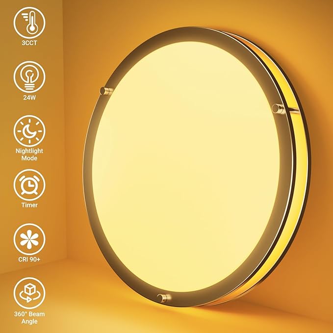 - 【Considerate Night Light & Timer Feature】Enjoy the convenience of a built-in night light and timer. Set the dimmable ceiling light to a warm, relaxing 3000K at 10% brightness for a peaceful night's sleep. The timer function (60 seconds/1 hour) means no more getting out of bed to turn off the lights