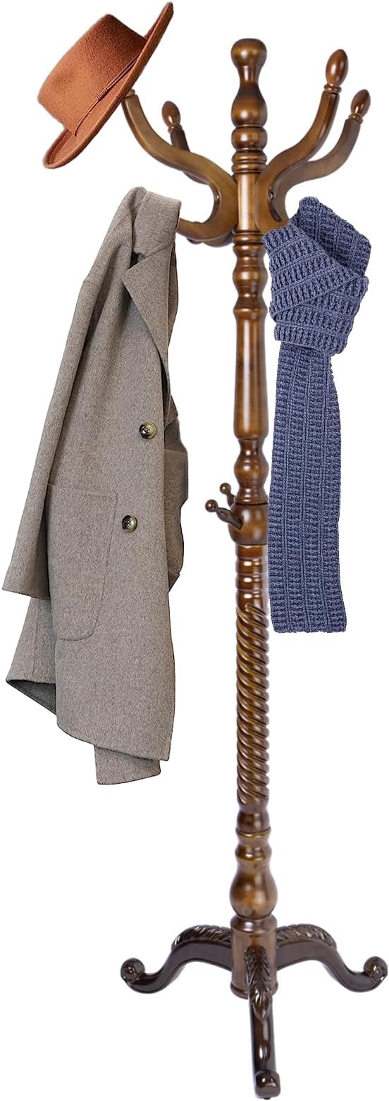 73 in Wood Coat Rack, Coat Rack Freestanding with Stable Round Base, Adjustable Height Tree Coat Racks Stand for Home Bedroom Office Hallway Entryway (Triangular Antique)