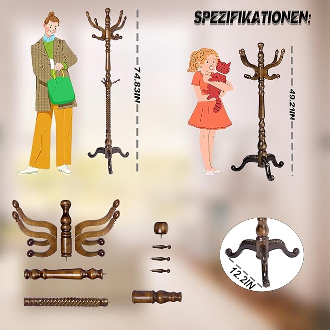- Wider Application:The wooden coat tree is designed in a vintage style, with a simple structure and comprehensive functions. The coat rack can be placed in the hallway, living room, bedroom, office, and any corner you need.
