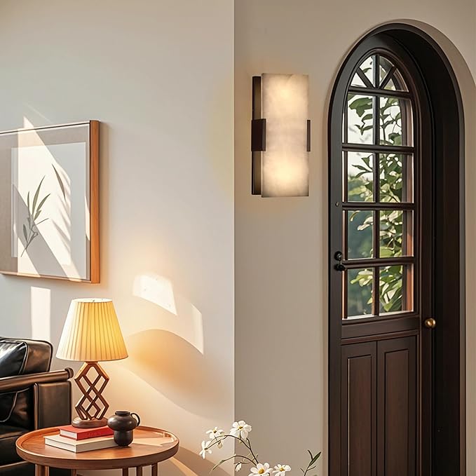 - 3.Marble Wall Sconce PERFECT FOR YOUR SPACE - The Marble Wall Sconce is ideal for a variety of spaces for bathrooms.It's great in dining rooms,bars,kitchen counters,over sinks bedside living room bathroom library and in bedrooms.This Wall Lamp works with industrial, modern and transitional designs.