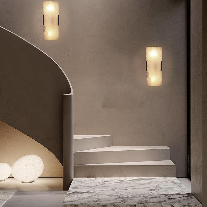 - 3.Marble Wall Sconce PERFECT FOR YOUR SPACE - The Marble Wall Sconce is ideal for a variety of spaces for bathrooms.It's great in dining rooms,bars,kitchen counters,over sinks bedside living room bathroom library and in bedrooms.This Wall Lamp works with industrial, modern and transitional designs.