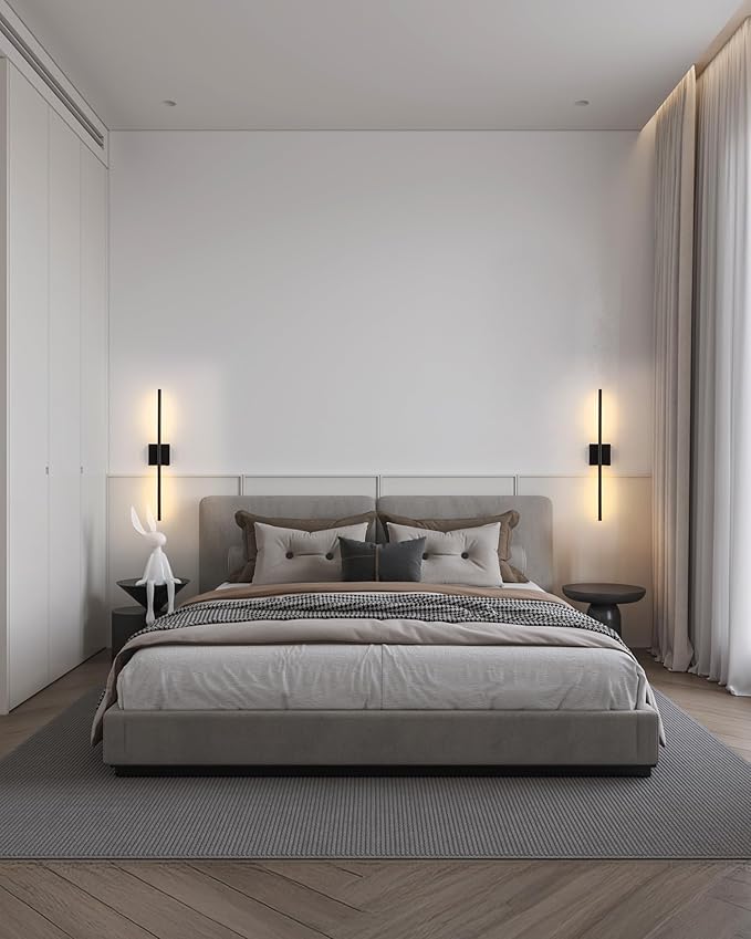 - Touch type stepless dimming: Dimmable wall sconce, touch sensitive button control on/off. Stepless dimming, according to your light needs, long press can adjust the brightness from 5% to 100%, you can also use the remote control included in the package. The remote control requires two AAA batteries (batteries not included).