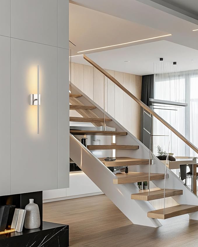 - Touch type stepless dimming: Dimmable wall sconce, touch sensitive button control on/off. Stepless dimming, according to your light needs, long press can adjust the brightness from 5% to 100%, you can also use the remote control included in the package. The remote control requires two AAA batteries (batteries not included).