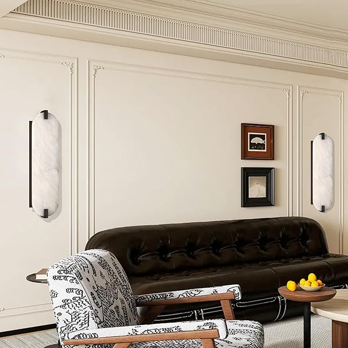 - 3.Marble Wall Sconce PERFECT FOR YOUR SPACE - The Marble Wall Sconce is ideal for a variety of spaces for bathrooms.It's great in dining rooms,bars,kitchen counters,over sinks bedside living room bathroom library and in bedrooms.This Wall Lamp works with industrial, modern and transitional designs.