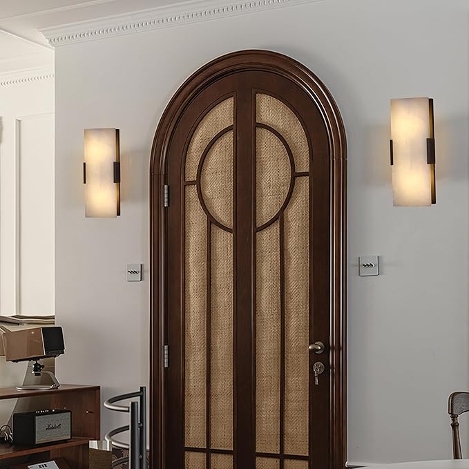 - 3.Marble Wall Sconce PERFECT FOR YOUR SPACE - The Marble Wall Sconce is ideal for a variety of spaces for bathrooms.It's great in dining rooms,bars,kitchen counters,over sinks bedside living room bathroom library and in bedrooms.This Wall Lamp works with industrial, modern and transitional designs.