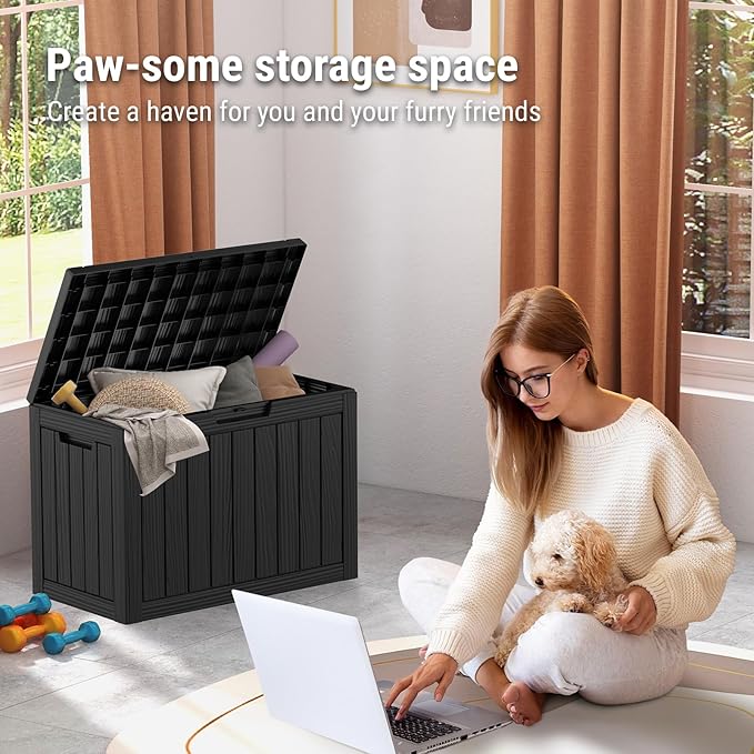 - 【Weatherproof & Durable】- Made from upgraded PP resin with a refined woodgrain finish, this deck box features a UV-resistant and waterproof surface that keep your items clean and dry year-round with minimal maintenance, ensuring long-lasting performance
