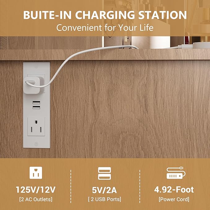 - 【INSTALL & AFTER-SALES】Farmhouse vanity desk with charging station packaging comes with detailed instructions, all required components have assembly number labels and all components are arranged as expected, making the process efficient, hassle-free and easy to assemble .Take makeup vanity the about 1 hours to complete with 2 people. We have professional online customer service and telephone service. If you have any questions, please contact us directly and we will solve the problem for you.