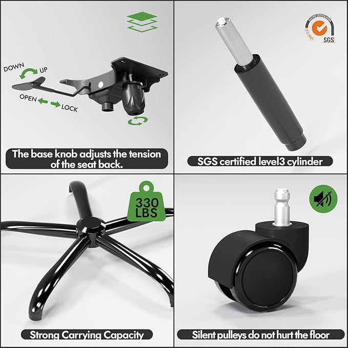 - 330 lbs Load Capacity and Durable Construction: This chair is made of high-quality materials and has a sturdy 5-point bottom metal base to ensure strength and stability. Whether you're working or playing, enjoy a chair designed to meet your needs