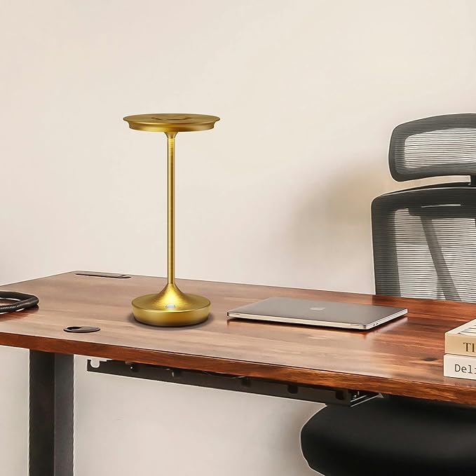 YHT Cordless Rechargeable Table Lamps, Portable 6000mAh Battery Desk Lamp Waterproof 3 Color Stepless Dimming LED Table Light with Memory Function for Outdoor/Dinning/Patio/Restaurant (Gold 1Pack)