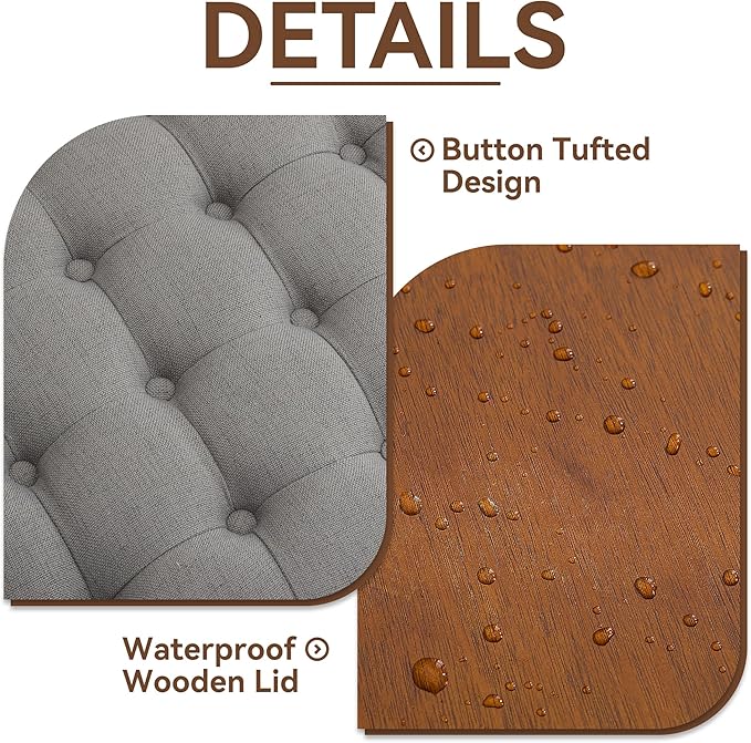 - Simple & Stylish Design: This round ottoman has a simple and stylish design. It is made of tufted fabric, decorated with exquisite buttons and bronze rivets. It feels soft and comfortable. Paired with solid wood legs, make it's stable and durable, and can weight capacity of 350LBS, suitable for various home styles, perfect for living rooms, bedrooms or entryways.