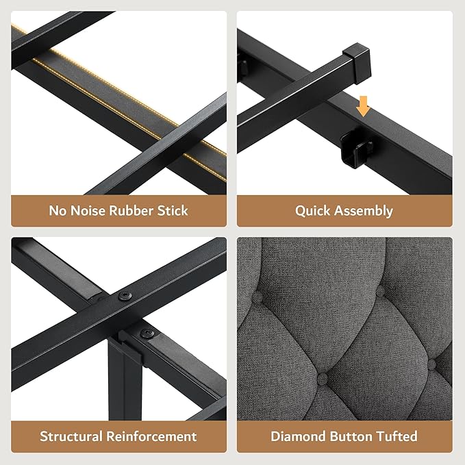 - Comfortable Backrest: The bed frame with headboard features a soft, breathable linen with plush, resilient foam cushioning, providing comfortable back support for lounging and reading. Button tufting keeps headboard secure, making it durable and supportive over time