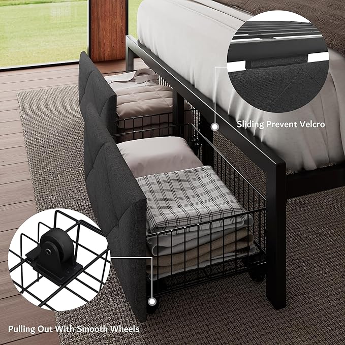- Spacious Storage: Equipped with large under-bed drawers, this queen bed frame with storage offers ample space to keep your room clutter free. An additional 10.5 inches space allows for versatile organization, helping to create a tidy sleeping space while leaving more room for décor