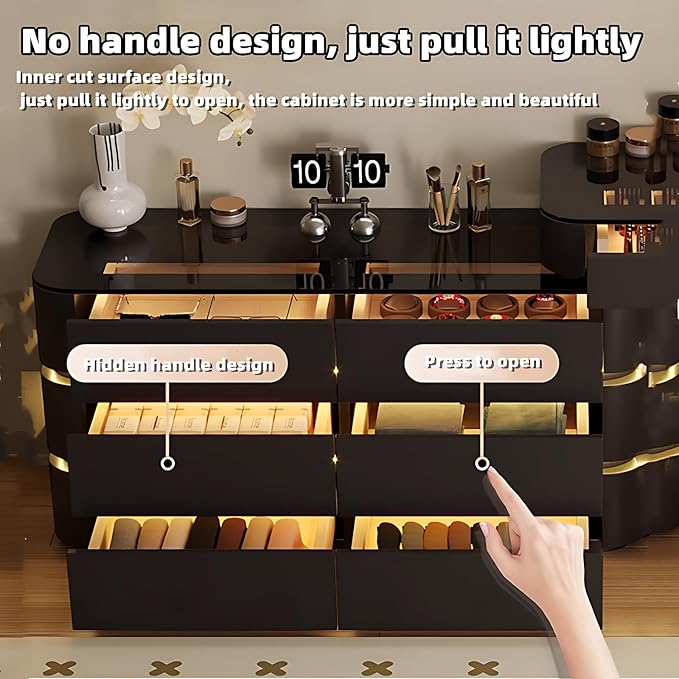 - Spacious Storage Design - This makeup vanity comes with 2 main drawers and 2 or 6 side drawers, featuring a unique L-shaped design that maximizes corner space. Efficient storage allows you to neatly organize your makeup and essentials, keeping your vanity desk tidy and visually appealing.