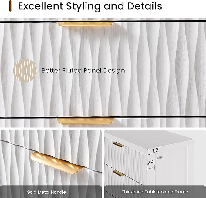 - 【Modern Chic Appearance】The unique wave-like fluted panel enhances the texture and elegance of this bedroom dresser, adding a touch of sophistication to your room. Its elegant metal handles harmonize with the fluted design, complementing any decor style. This dresser is ideal for your bedroom, living room, or hallway.