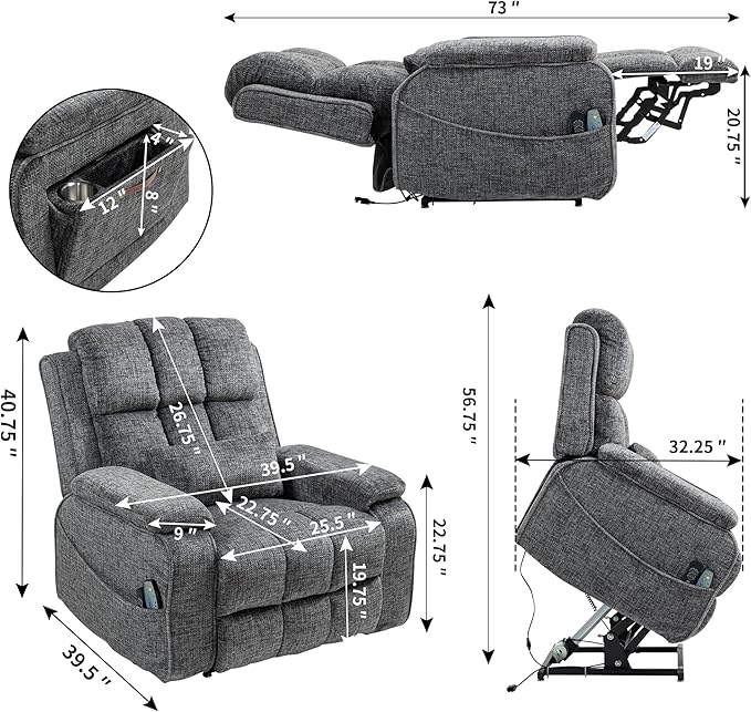 - ❤【LIFT RECLINER CHAIRS FOR ELDERLY】Heavy-duty lift recliner with side storage with retro Pull-tab design and premium chenille fabric ensure reliability, offering extended comfort and relaxation. Lift chairs for seniors, the backrest and leg rests are controlled by a single button, providing the best angle for reading, playing, sleeping, and standing.