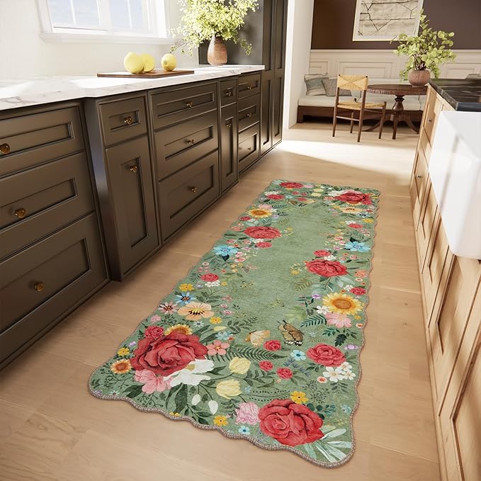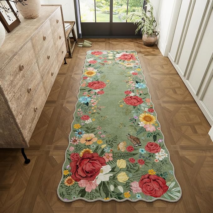 - ★【NON SLIP RUNNER RUG】Our floral rug is designed with reinforced TPR and cotton non skid backing, this stylish rug will stay where you place it to prevent dangerous slides and slips while protecting your floor from moisture, stains and scratches. Perfect for busy home with kids and pets and craft a home atmosphere that complements your unique personality.
