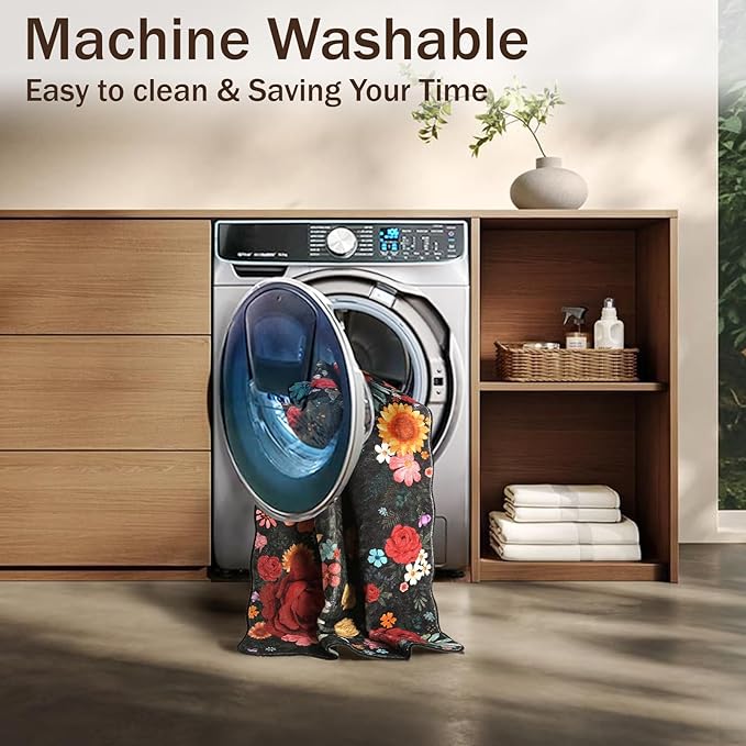 - ★【NON SLIP RUNNER RUG】Our floral rug is designed with reinforced TPR and cotton non skid backing, this stylish rug will stay where you place it to prevent dangerous slides and slips while protecting your floor from moisture, stains and scratches. Perfect for busy home with kids and pets and craft a home atmosphere that complements your unique personality.