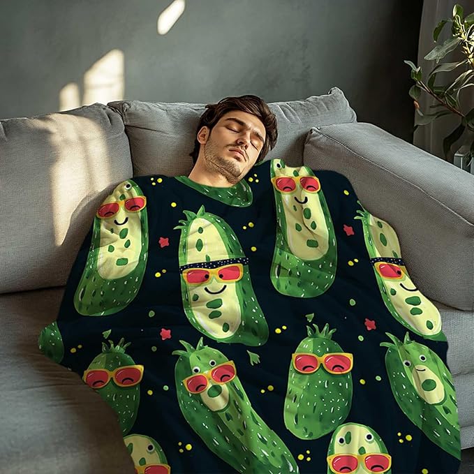 Pickle Blanket Throw for Girls and Women, Funny Gifts for Pickle and Cucumber Lovers, Lightweight Fleece Stuff for Couch and Bed Decor, 50x60 Inches