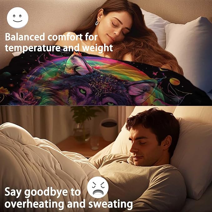 Wolf Blanket for Adults, Wolf Gifts for Women and Men, Perfect Animal Colorful Home Decor, Lightweight Fleece, 50x60 Inches