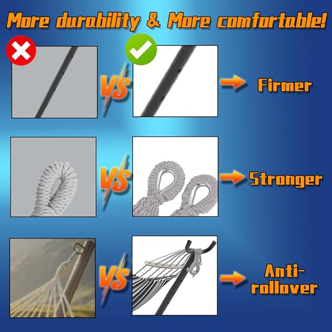 - 【Large Size & Weight-Bearing】 : ANAGOO hammock with stand adopts a reinforced design, double hammock maximum load capacity up to 500LBS, multiple people share no pressure.
