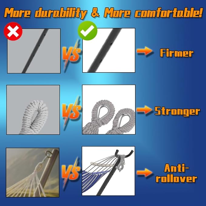 - 【Large Size & Weight-Bearing】 : ANAGOO hammock with stand adopts a reinforced design, double hammock maximum load capacity up to 500LBS, multiple people share no pressure.
