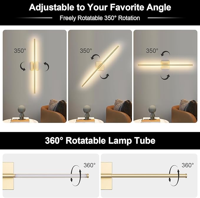 - Adjustable Light Direction: The wall lamp whole adopts 350° rotation design, two tubes are detachable and can be rotated 360°, you can easily control the light direction according to your own preference