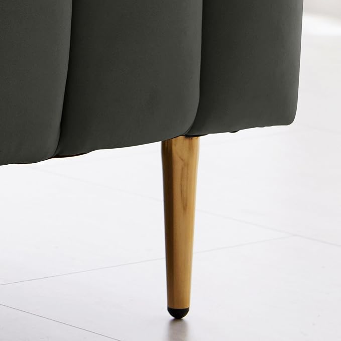 Livinia Full Size Elton Velvet Platform Bed, Upholstered Bed Frame with Vertical Channel Tufted Headboard Footboard, Strong Wood Slats, No Box Spring Needed, Gray (Full)