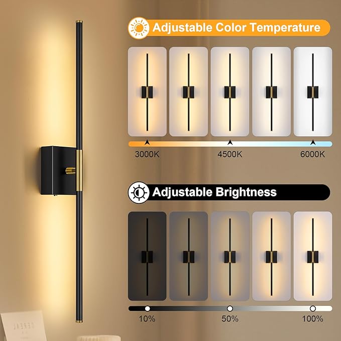 - Dimmable and Timer: The living room wall sconce offers 3000K-6000K color temperatures to choose from, and each color temperature option can be adjusted to a different brightness, which is suitable for a variety of modes, reading, working or resting. It also has a 30-minute timer setting