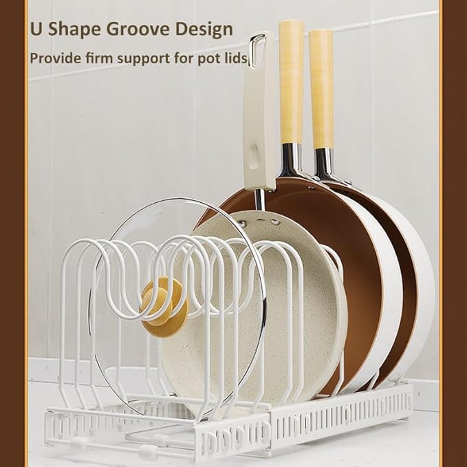 - 【U Shape Groove Design】The U-shaped bracket is a perfect pan lid organizer, which can provide firm support for our pot lid racks. The lid can be fixed in place without worrying about falling.