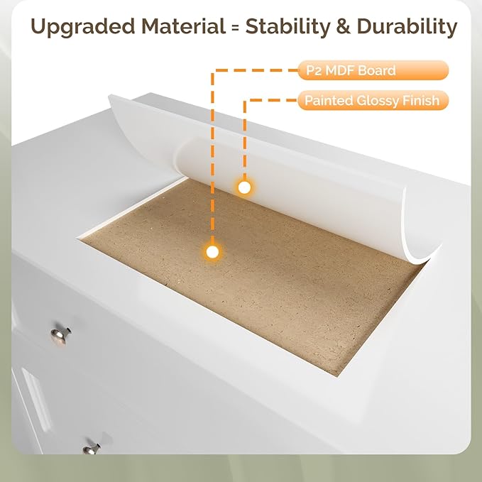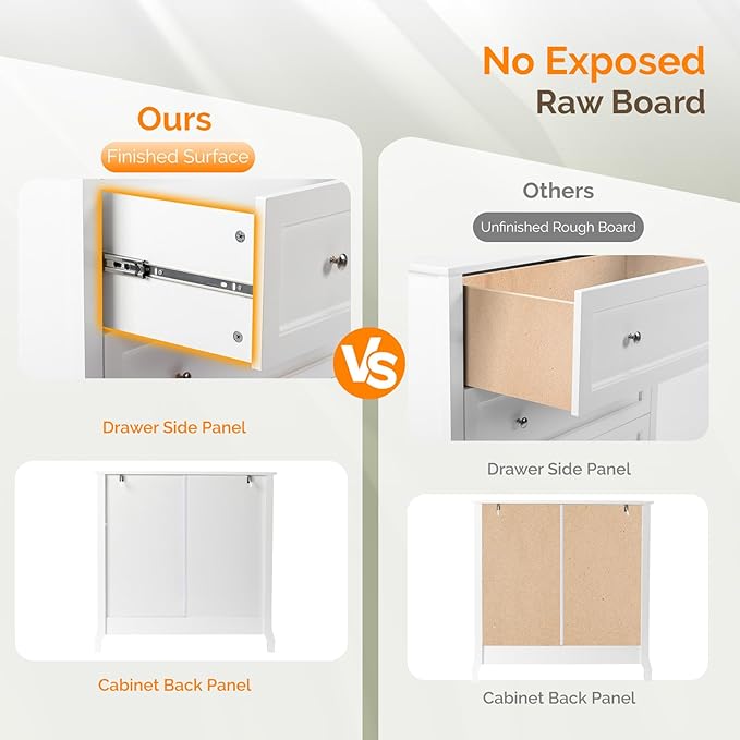 - 【Metal Silent Drawer Slide】Equipped with quality three-section soft-close drawer slides to allow drawers to open and close effortlessly and quietly, making it a breeze to access your items. They prevent the drawers from slamming shut, which is not only noise-reducing but also helps prolong the life of the dressers.