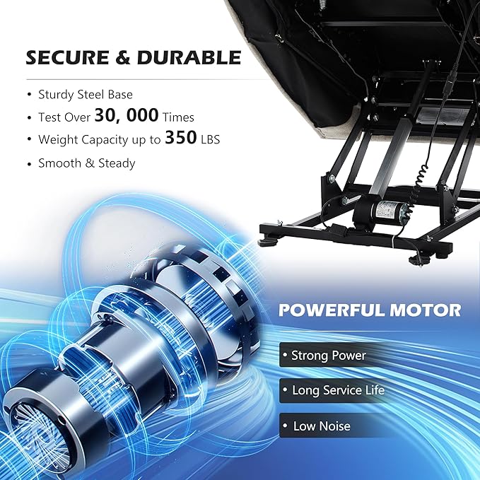 - Ultimate Comfort & Stable: Lean back into the overstuffed bouncy foam cushion to enjoy amazing comfort. Our lift recliner chair is made of sturdy wood frame and steel base, which is able to hold up to 350 pounds. The premium chenille fabric upholstery shows the luxury and grace.