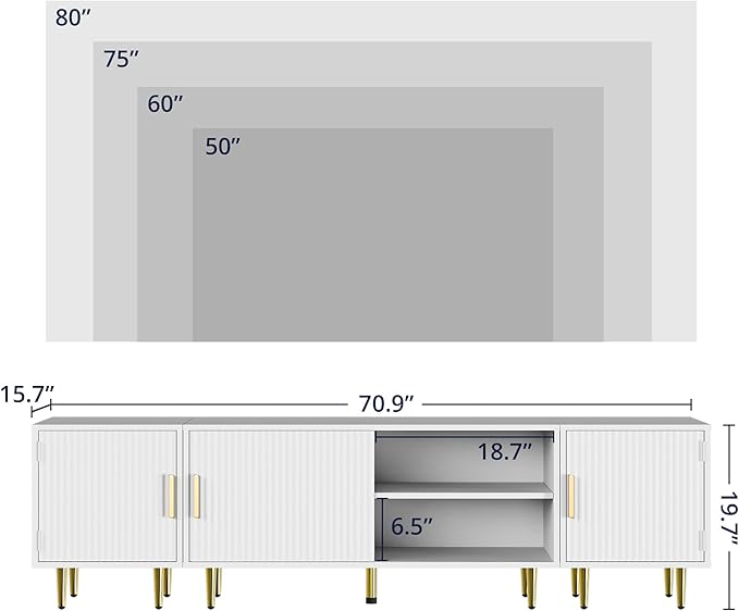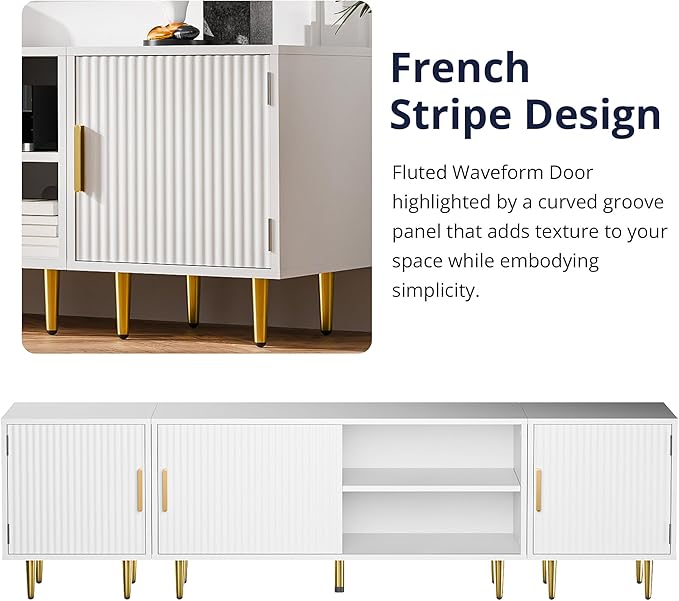 - Luxury Modern Design: Featuring a unique wave-like fluted panel, curved profile, and glossy top with gold metal accents, this TV stand adds modern luxury and sophistication to any living space