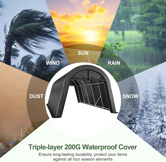 - Secure Grounding for Peace of Mind: Stay protected, even in severe storms. Our carport includes 16 heavy-duty steel anchor kits for secure ground fixation, plus ropes to further secure the cover to the frame. This ensures your carport remains steadfast, even in high winds and heavy snow