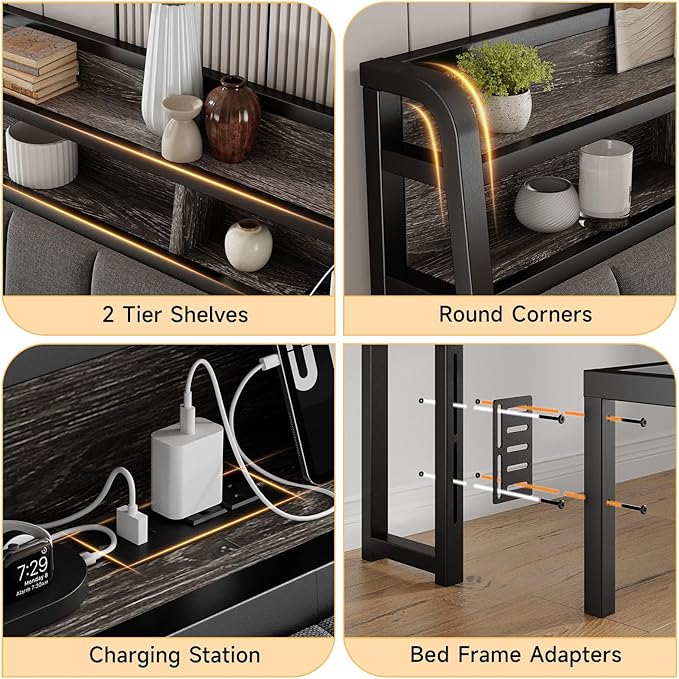 - LARGE STORAGE SPACE: ONBRILL headboard has two layers of storage space, which can be used to store books, table lamps, clocks, etc., which is convenient and practical. The rounded corner design avoids sharp edges, which is safer and very suitable for families with children or the elderly
