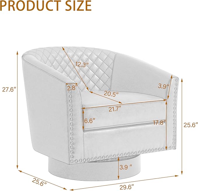 - 360° Swivel Barrel Chair: This swivel accent chair features a sturdy metal base that rotates smoothly 360 degrees and a heavy body for stability and comfort