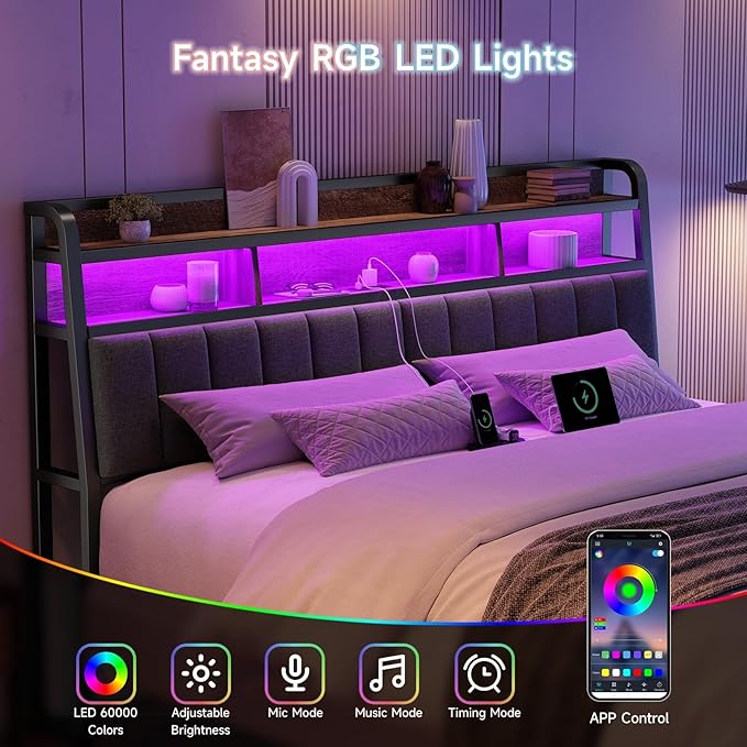 - RGB LED SYSTEM: Use the APP to easily control the LED light to create a warm, romantic, or relaxing atmosphere for your bedroom, allowing you to relax your mood and improve your sleeping environment. Velcro light strip, more stable installation, not easy to fall off