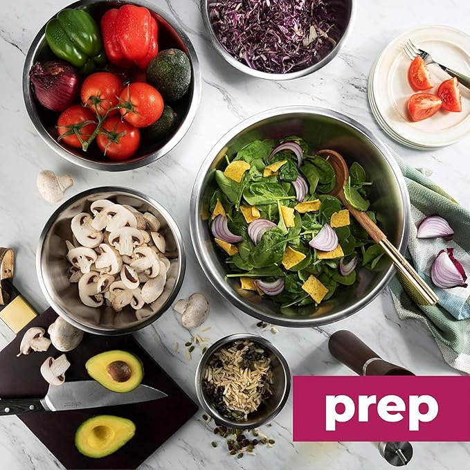 Stainless Steel Mixing Bowl Set, Nesting Bowls for Kitchen Baking, Cooking, Prepping, Kitchen Food Storage Organizers, No Lids (5 Pack)