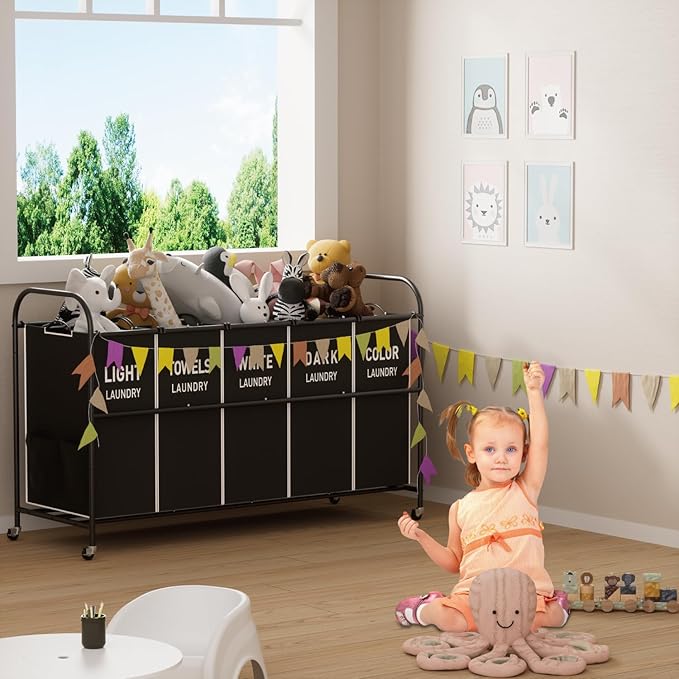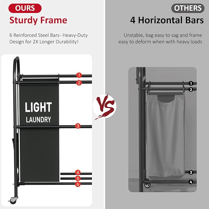 - Sturdy & Durable Frame: Constructed with a strong metal frame and reinforced joints, this laundry sorter is built to withstand daily use, offering exceptional durability and a high weight capacity for holding large amounts of clothes without bending or wobbling. The robust frame ensures that the cart remains in top condition, even with frequent use