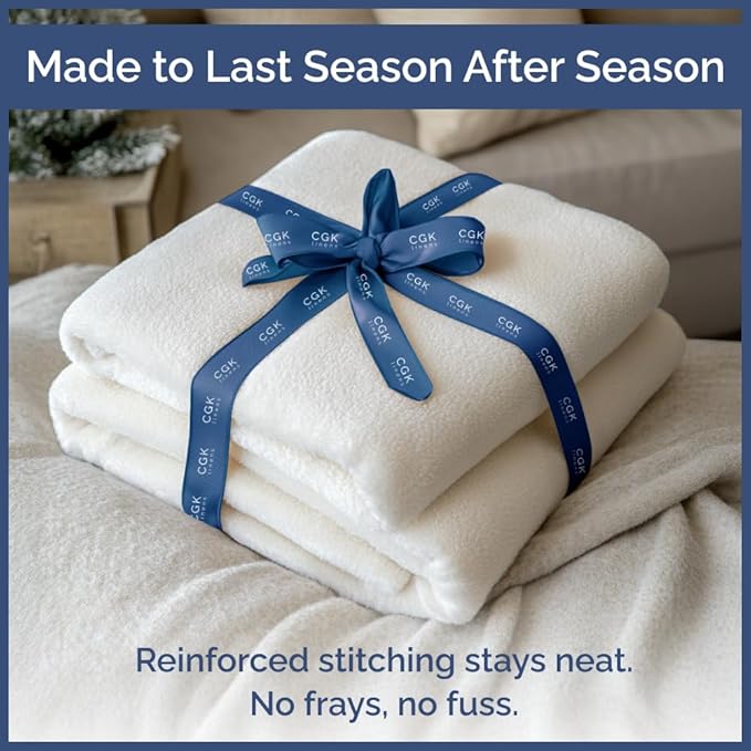 - DURABLE DOUBLE-STITCHED BLANKET DESIGN: Engineered for longevity, this blanket features a two-sided pile, wide 1-inch hem, and reinforced double needle stitching. Designed to withstand regular use and frequent washing, it maintains its shape and softness over time. Ideal for families, pets, and high-traffic homes