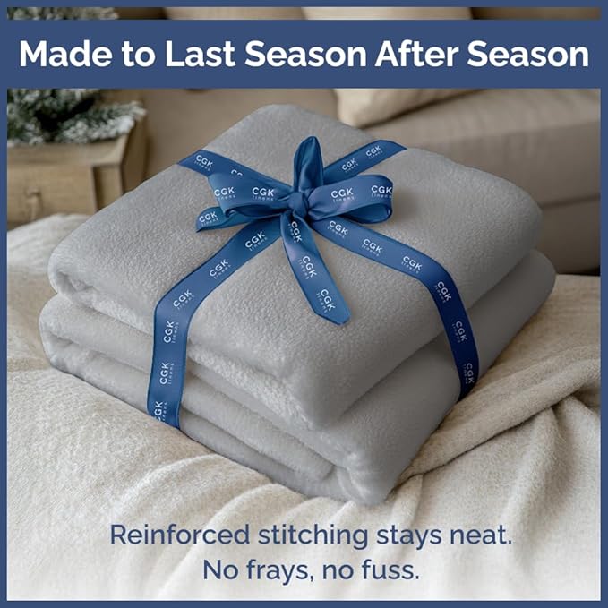 - DURABLE DOUBLE-STITCHED BLANKET DESIGN: Engineered for longevity, this blanket features a two-sided pile, wide 1-inch hem, and reinforced double needle stitching. Designed to withstand regular use and frequent washing, it maintains its shape and softness over time. Ideal for families, pets, and high-traffic homes