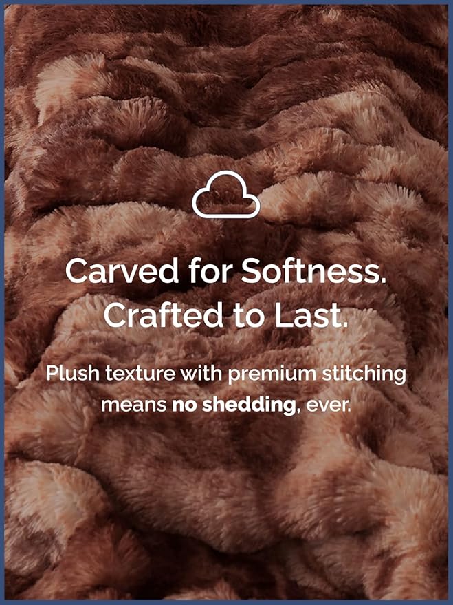 - COZY FLUFFY FAUX FUR THROW: Crafted with a luxurious carved rabbit fur front and a soft solid dyed mink reverse, this bubble-shaped faux fur throw blanket offers exceptional softness, warmth, and plush texture. Its breathable construction keeps you cozy without overheating or sweating—perfect for year-round comfort.