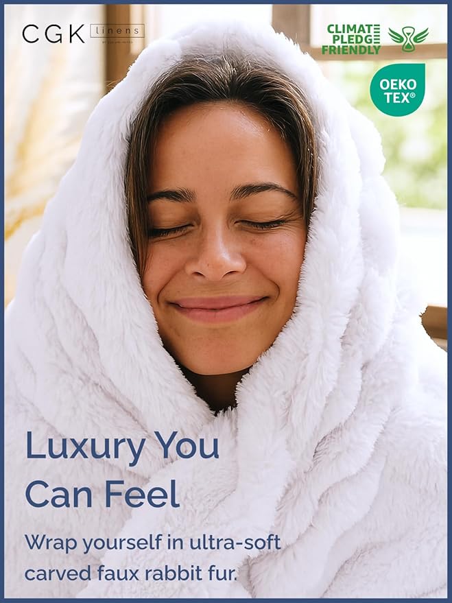 - COZY FLUFFY FAUX FUR THROW: Crafted with a luxurious carved rabbit fur front and a soft solid dyed mink reverse, this bubble-shaped faux fur throw blanket offers exceptional softness, warmth, and plush texture. Its breathable construction keeps you cozy without overheating or sweating—perfect for year-round comfort.