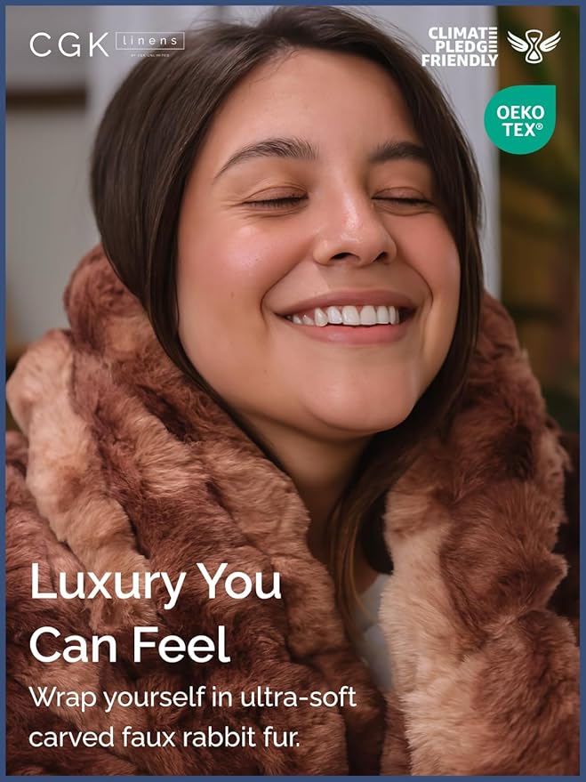 - COZY FLUFFY FAUX FUR THROW: Crafted with a luxurious carved rabbit fur front and a soft solid dyed mink reverse, this bubble-shaped faux fur throw blanket offers exceptional softness, warmth, and plush texture. Its breathable construction keeps you cozy without overheating or sweating—perfect for year-round comfort.