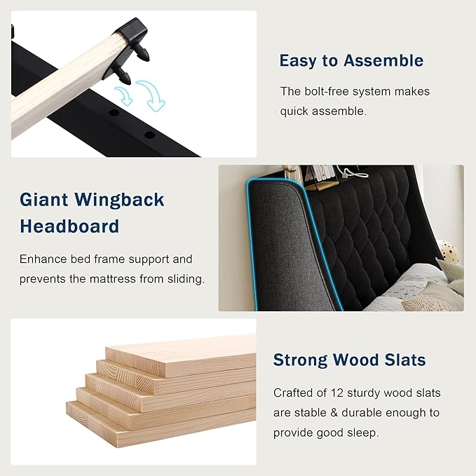 - Special Feature : Squeak Resistant, Thicken Wooden Slats, Wingback Headboard