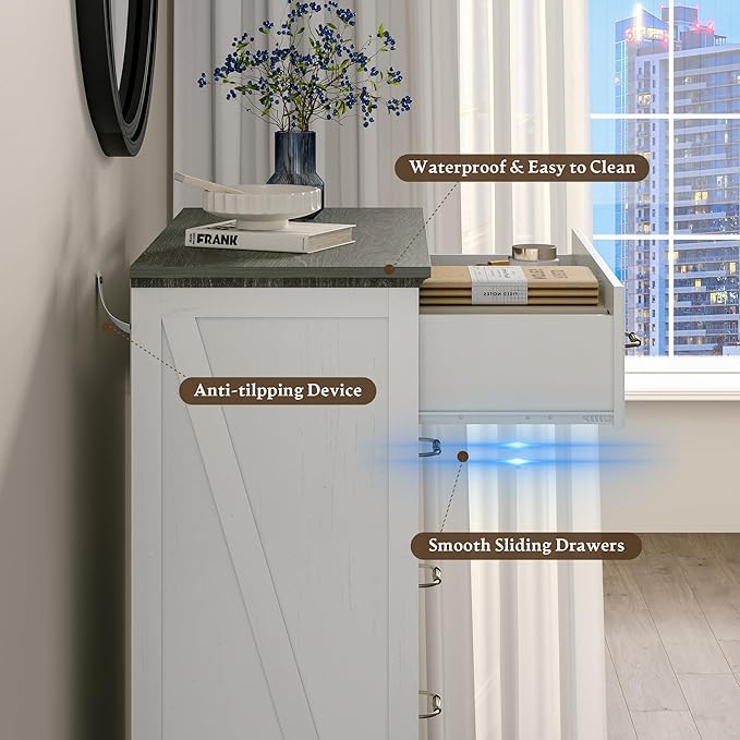- 【Versatile Wood Dresser】 Except for being long dresser in your bedroom or as a console table in your living room, this storage cabinet also can be used as night stand or side table. The tall white/black dresser could easily fit in various spaces such as living room, bedroom, hallway, entryway and closet. It is an ideal choice for small spaces such as apartment or dorm room