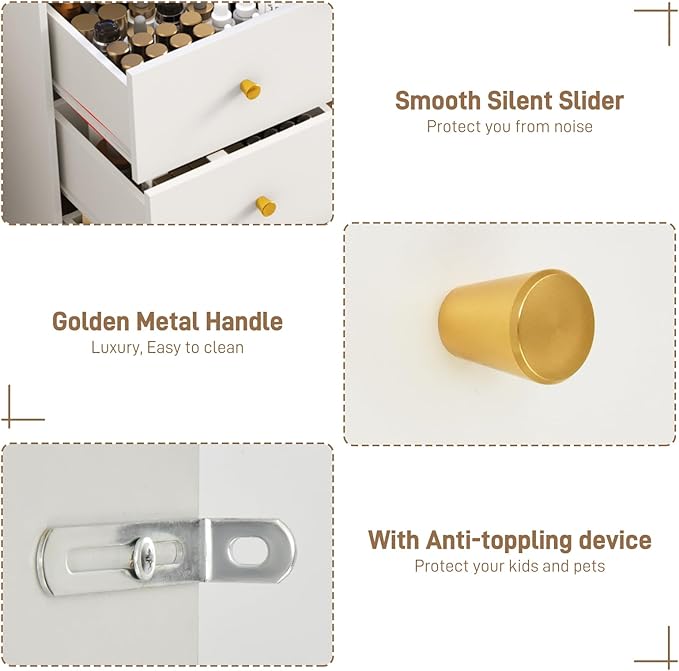 - Spacious Storage Capacity: Thoughtfully designed with multiple large-capacity drawers and storage spaces, this vanity allows you to easily store a variety of cosmetics, skincare products, and accessories, everything can be effectively organized, helping you maintain a neat and orderly makeup area.