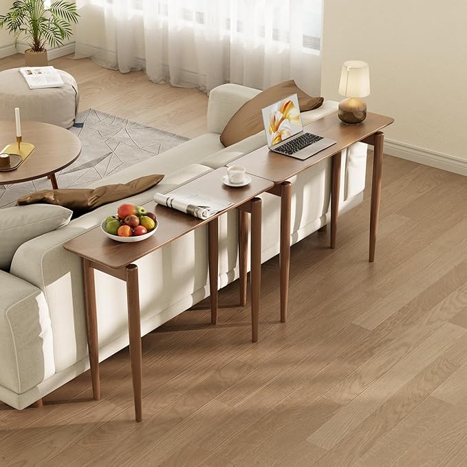 Wood Console Table Walnut Entryway Table, Thin Console Table, Sofa Tables for Living Room (39.4'')