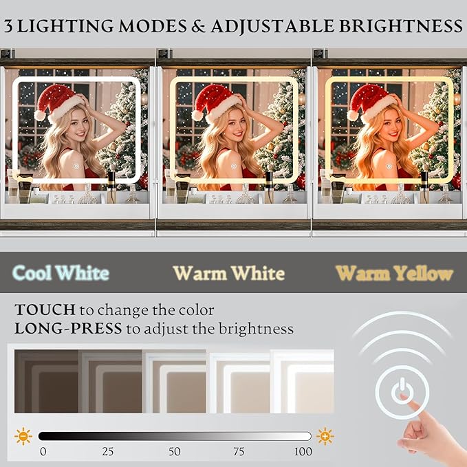 - 【3 Lighting Modes & Brightness Adjustable】The white/black/pink/grey vanity features a large LED mirror, providing 3 color modes (warm/natural/cool) and brightness adjustable. The vanity desk can meet all your different needs, perfect for home makeup, salon, and live broadcast. So you can experience the star-like makeup treatment